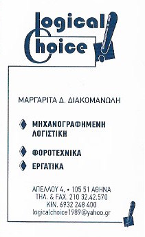Η επιχείρηση Logical Choice δραστηριοποιείται στην κατηγορία Λογιστικά Γραφεία. Μπορείτε να επισκεφθείτε την επιχείρηση στη διεύθυνση Πλατεία Ομονοίας 10, 8ος ΌΡΟΦΟΣ Αθήνα, Αττική, χρησιμοποιώντας τον χάρτη παρακάτω. Για περισότερες πληροφορίες ή προσφορές επικοινωνήστε στο τηλέφωνο 2103242570.