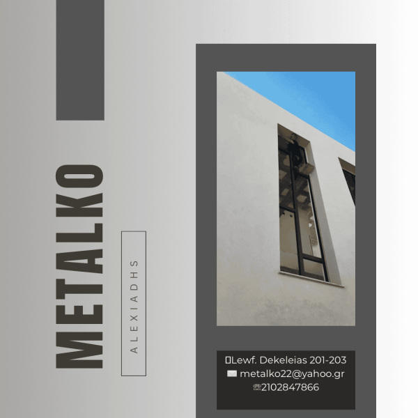 Η Metalko, με έδρα τις Αχαρνές, αποτελεί μια οικογενειακή επιχείρηση με πολυετή εμπειρία στον χώρο των αλουμινοκατασκευών και σιδηροκατασκευών. Τρεις γενιές αφοσίωσης και τεχνογνωσίας εγγυώνται την άριστη ποιότητα, την ανθεκτικότητα και την αισθητική κάθε έργου.